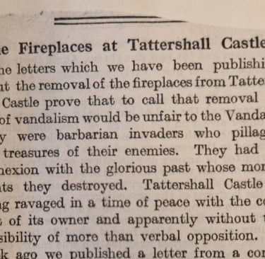 At one point Tattershall castle was left in ruin and at one point the ornate fireplaces were auctioned off the people revolted and the fireplaces were returned.